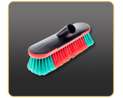 Spazzola Vikan angolata con flusso d’acqua per la pulizia di veicoli industriali, commerciali, autobus e mezzi d’opera. La particolare sagomatura delle setole garantisce il costante contatto con la superficie da pulire; la bordatura in gomma protegge dal rischio di danni alle vernici. Misure: 50 x 250 mm.